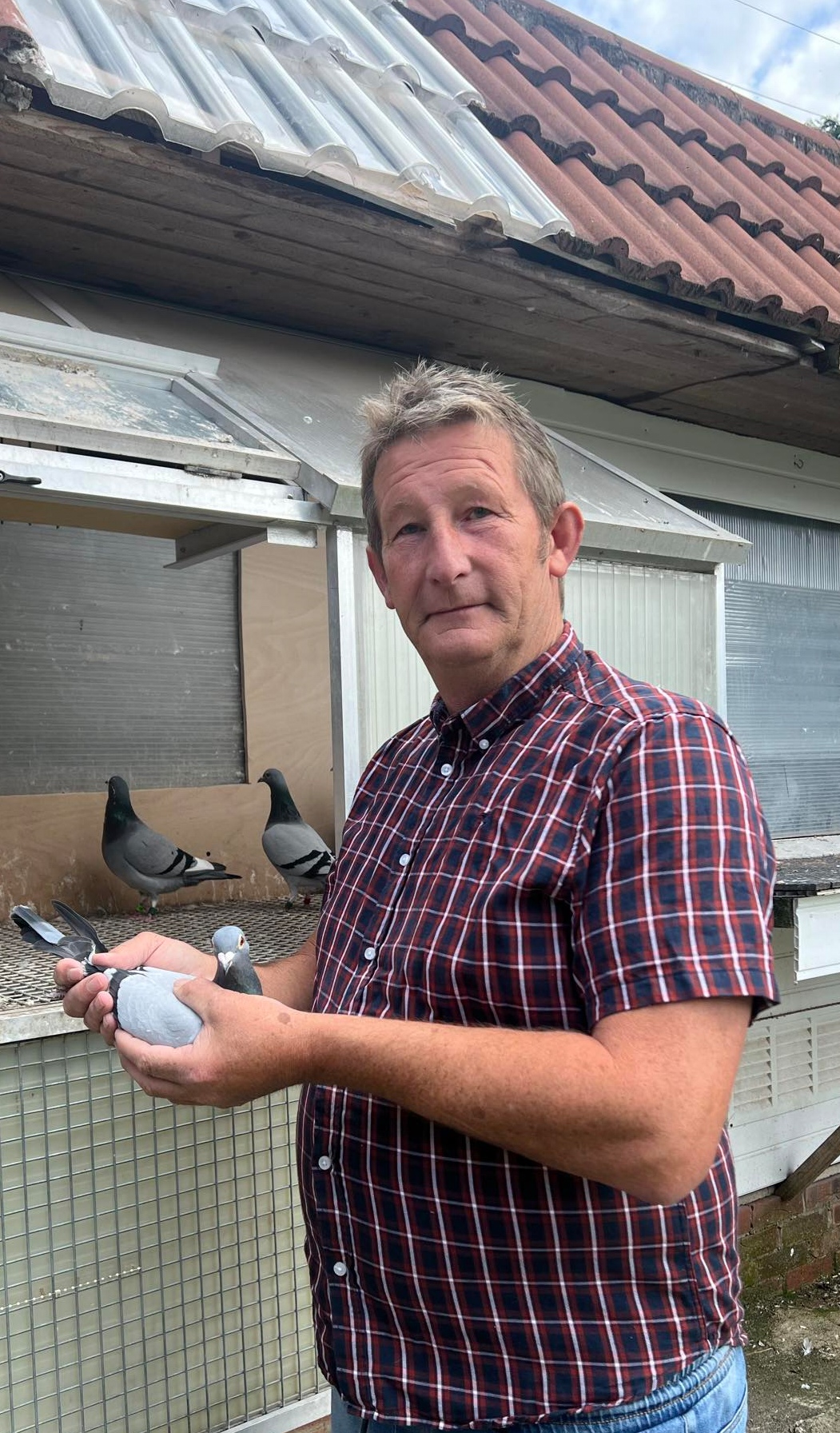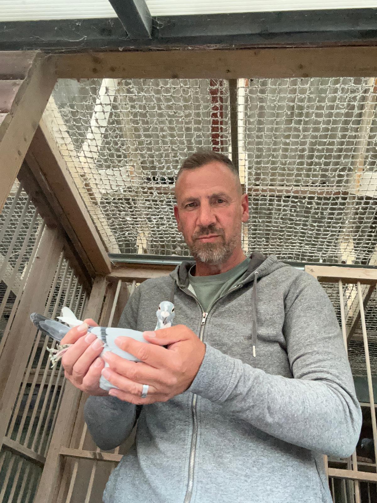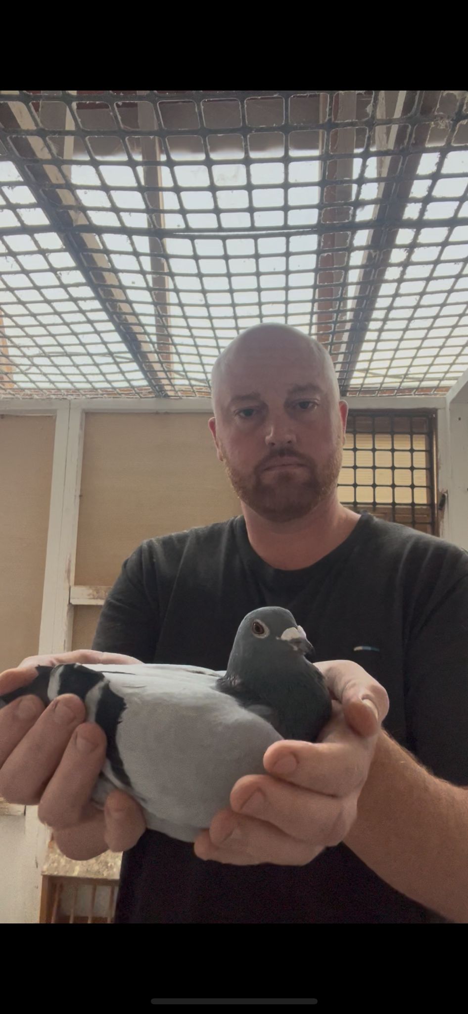 This blue cock (just not enough) is raced on the widowhood system he was bred by the late Malc Gregory of darley dale I feed bayers galaxy sport light all week I fly them twice a day round the loft