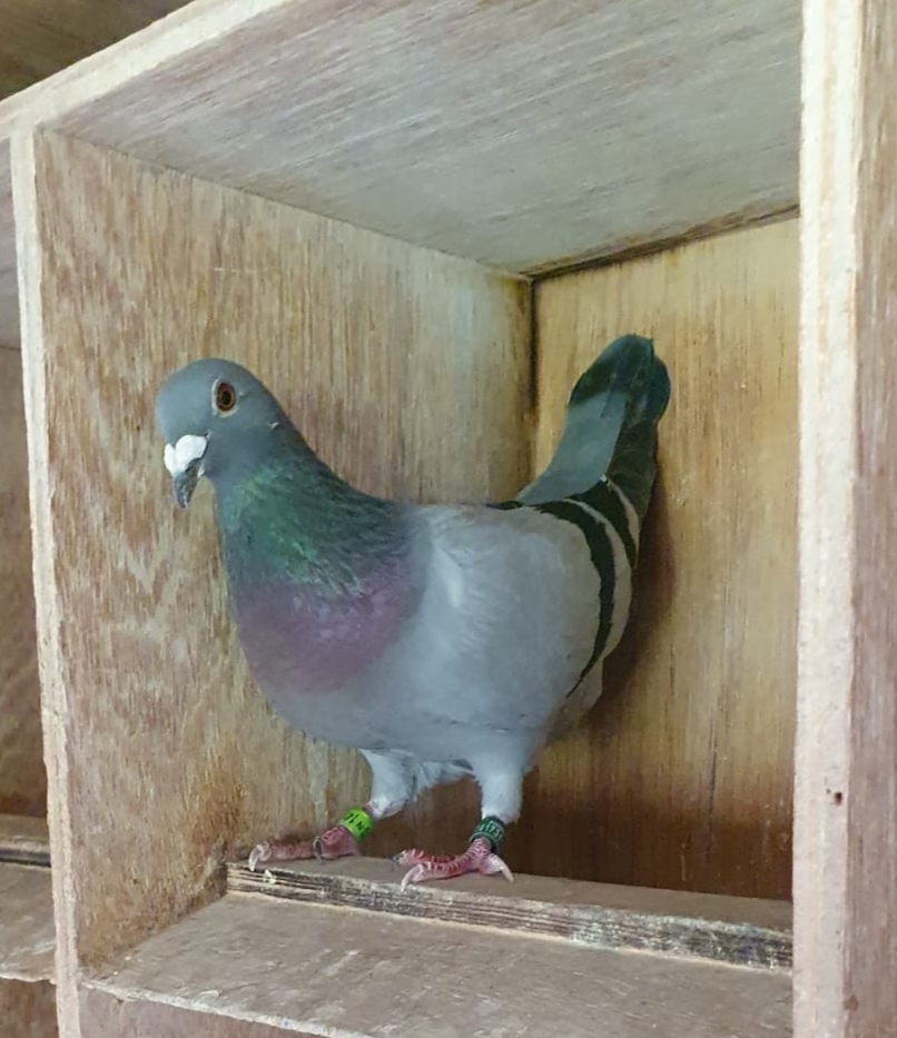 This hen topped the fed as a young bird from Salisbury with 22 members sending 419 birds . Last season she flew every channel race and always there on the day. This season she has had 9th Northern Classic 52nd open Vire, 11th Northern Classic 86th open Fougeres and 1st section 1st open Messac.First pigeon back to the loft every time.