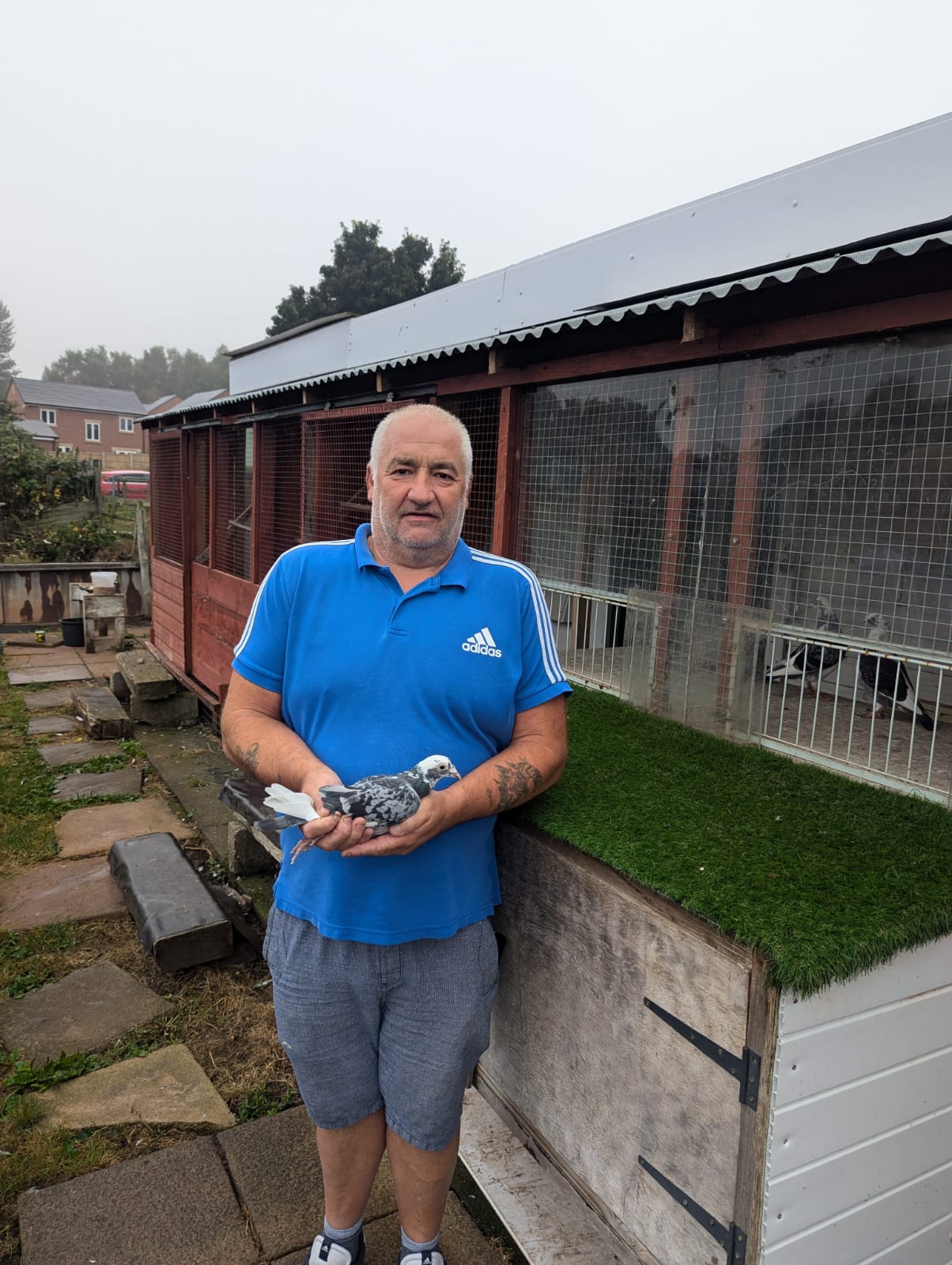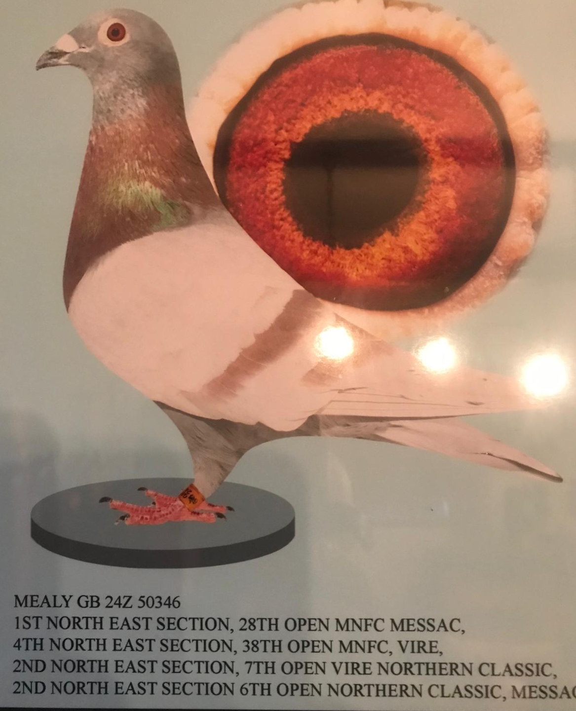 She has been raced with no motivation at all just back to the perch being feed 100% Gabby vandenabeele corn. Sire is full brother to 1st section 1st open Carentan NMCC and dam is through Nigel Laycocks Northern Bound . Both parents with gift birds off Dan Jepson.