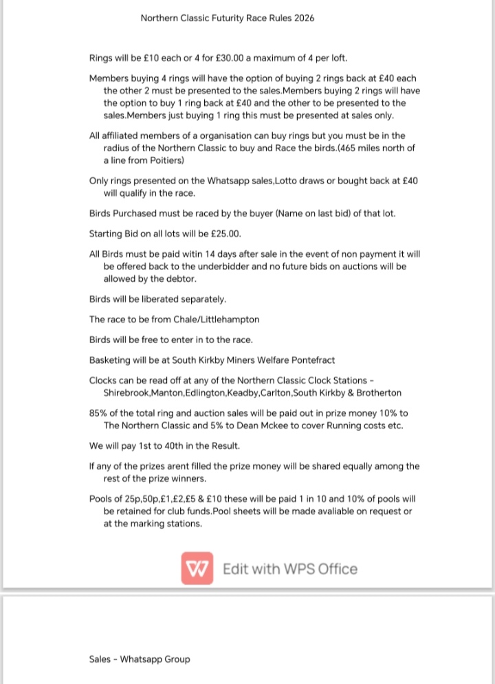 Rule on Buy Back - you MUST inform of any buy backs before you present any to sales. Once presented you won't have the option to buy any back at £40 each you will have to pay the auction price for your birds.